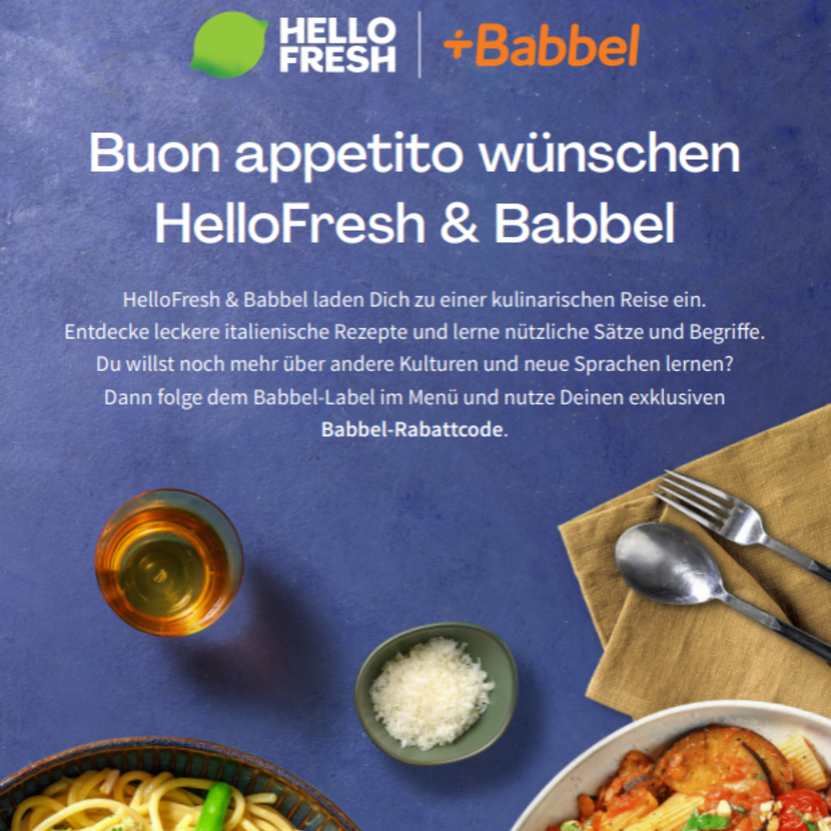 - Vorteil von HelloFresh für Babbel-Kunden von bis zu 100 € auf die ersten vier Kochboxen